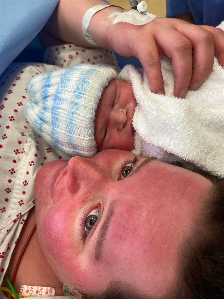 Finally, at 11:15pm on the Sunday evening, I was wheeled down to theatre. It was the scariest journey of my life; I cried as I was pushed in my bed down all those corridors. But honestly, the c-section was the best part of the frankly shambolic experience. The midwife was lovely and helped me to put on some music. The anaesthetist stroked my hair and reassured me as I cried with fear, and told me with a giggle that the operation was actually already underway and I hadn’t felt a thing! My son’s father held my hand throughout – he hadn’t left the hospital in days and must have been absolutely exhausted, too. The surgeons lifted my baby like Simba to show me and congratulated me the minute he was born. It was absolutely magical.