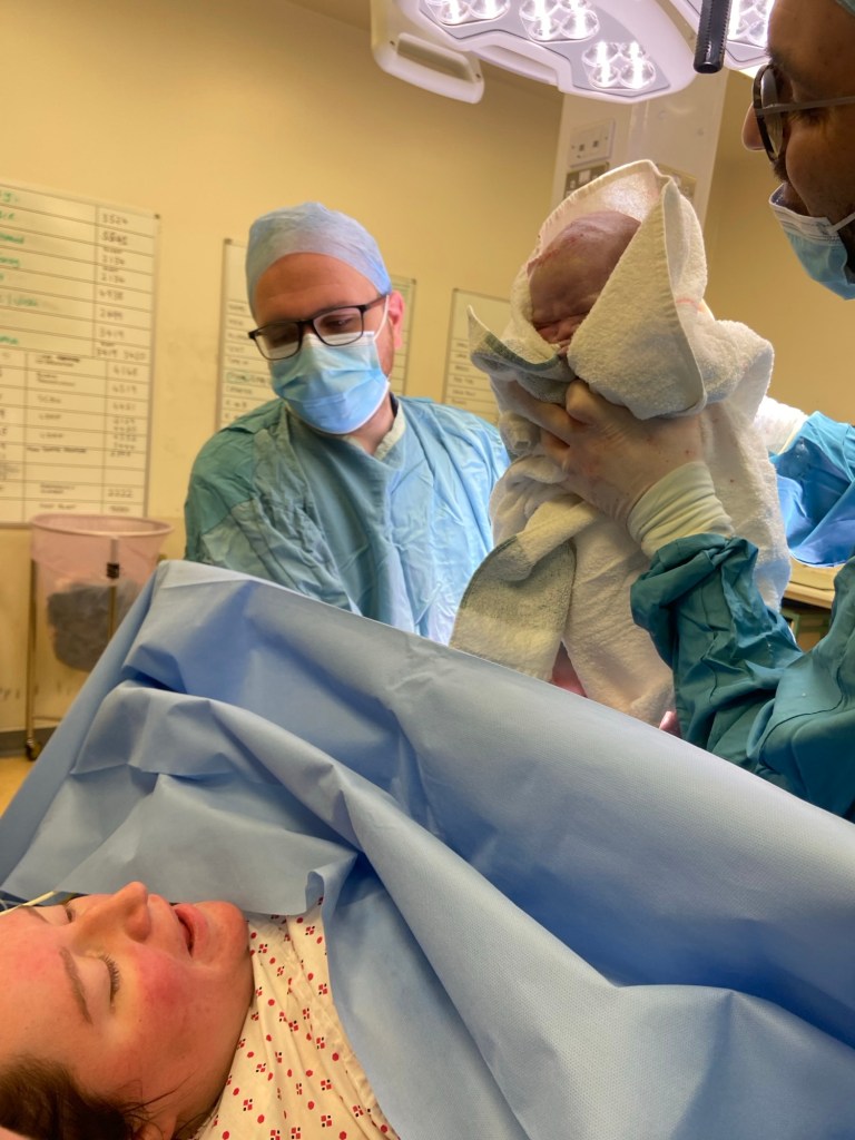 I think all of this was just a perfect storm. The epidural seemed to slow down my progression – I was at 7cm – and I was just too physically exhausted to even contemplate actually giving birth at this point. I fell asleep for about an hour, only to be woken up by my midwife, who informed me that my baby was starting to exhibit signs of distress. Understandable – he’d been going through this with me for the last few days. No wonder he was distressed. I was then informed that I was going to be taken to theatre for an emergency c-section – category 2, which meant within the next 45 minutes. I was devastated to lose my chance at a vaginal birth, and so frightened, but as my son’s father got into his scrubs, I actually managed to calm myself down. Only 45 minutes to wait until I met my son, right?